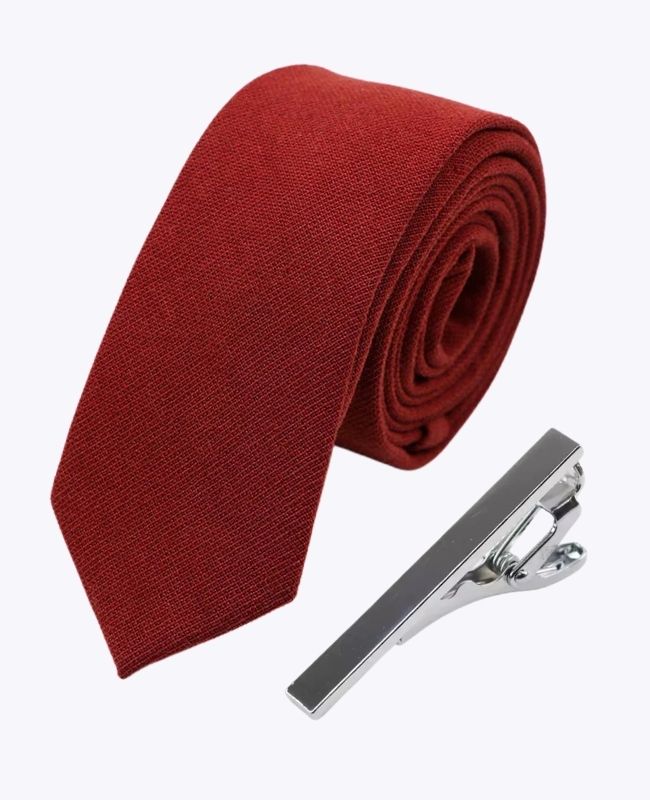 Herren-Terrakotta-Baumwollkrawatte + Krawattenklammer „Edgard“